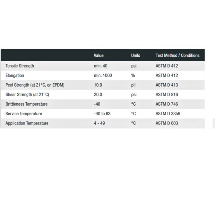 Millennium EPDM Seam Tape is a black, vulcanized rubber, pressure-sensitive adhesive tape designed to provide high strength and watertight seams for single ply EPDM roofing membranes. Millennium EPDM Seam Tape is soft and tacky, providing a quick grab onto EPDM field membranes, yet possesses high initial strength. Millennium EPDM Seam Tape exhibits excellent adhesion to most substrates, including glass, metals, wood, concrete, masonry, and some plastics. This tape will provide OEM-quality performance for EPDM single-ply restoration projects.